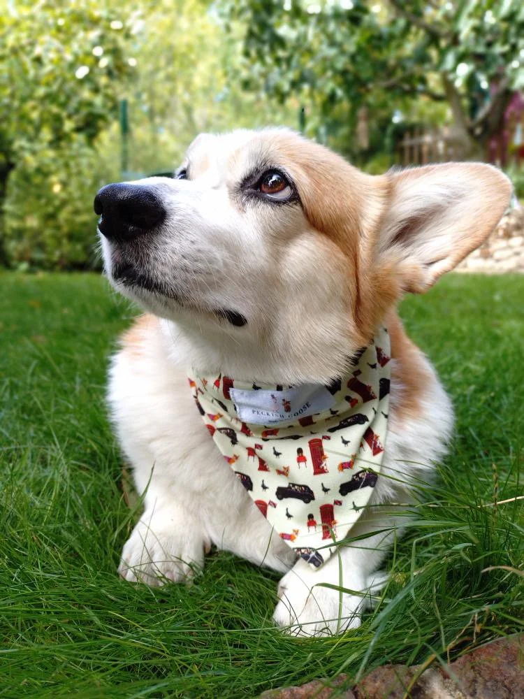 Peckish Goose dog bandanas for the snappy dressers among us. Dogs like to go out looking swish just like us. We help them achieve this.